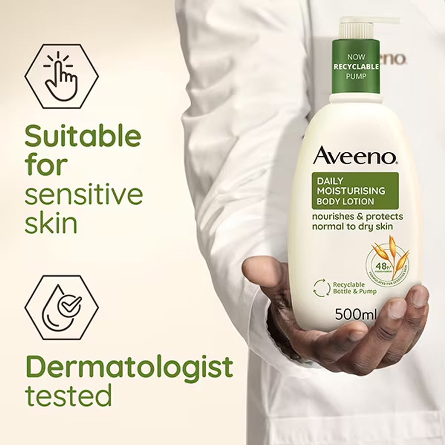 This Aveeno Daily Moisturising Lotion with Colloidal Oatmeal actively moisturises dry and sensitive skin, providing a prolonged soothing action. With regular use, it hydrates the skin leaving it feeling comfortable, soft and smooth.