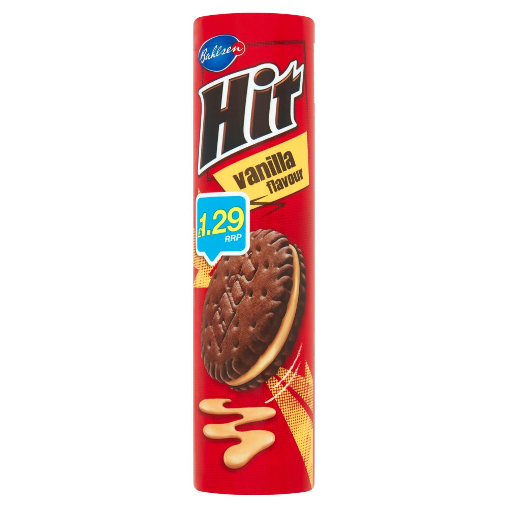 Buy Case of 12 x 220g Bahlsen Hit Vanilla, Sandwich biscuit with vanilla flavour filling.