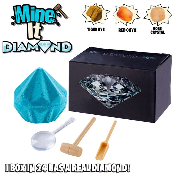 Contents: 1 x Pack which is either in the shape of a gold bar or a black box with a diamond on the cover, 1 x Chisel, 1 x Magnifying glass and 1 x Hammer
