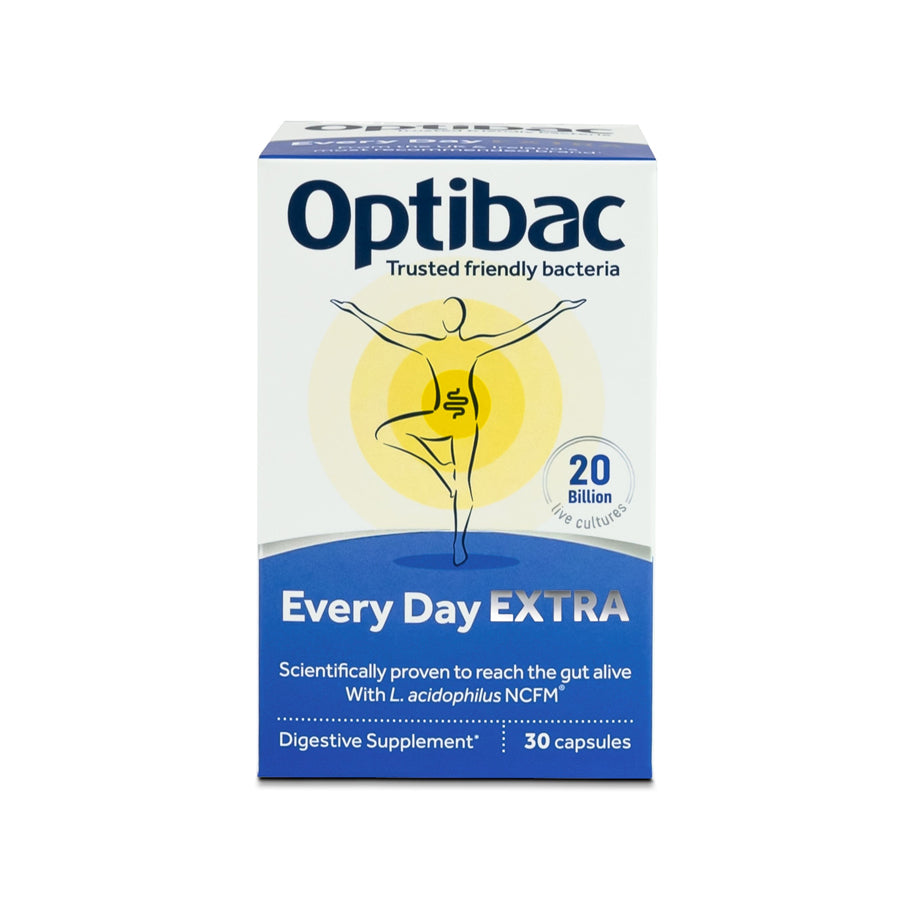 The OptiBac strains in 'For every day EXTRA Strength' (formerly known as 'For daily wellbeing EXTRA Strength') are some of the world's most researched and documented strains. All of the friendly bacteria in this supplement are scientifically proven to pass through stomach acidity to reach the gut alive.