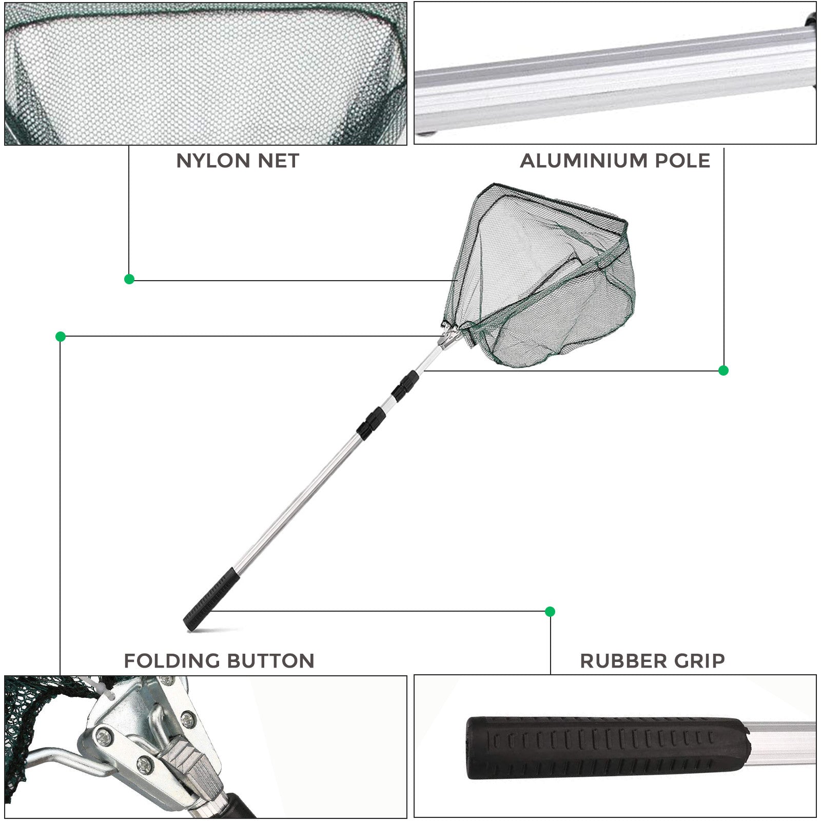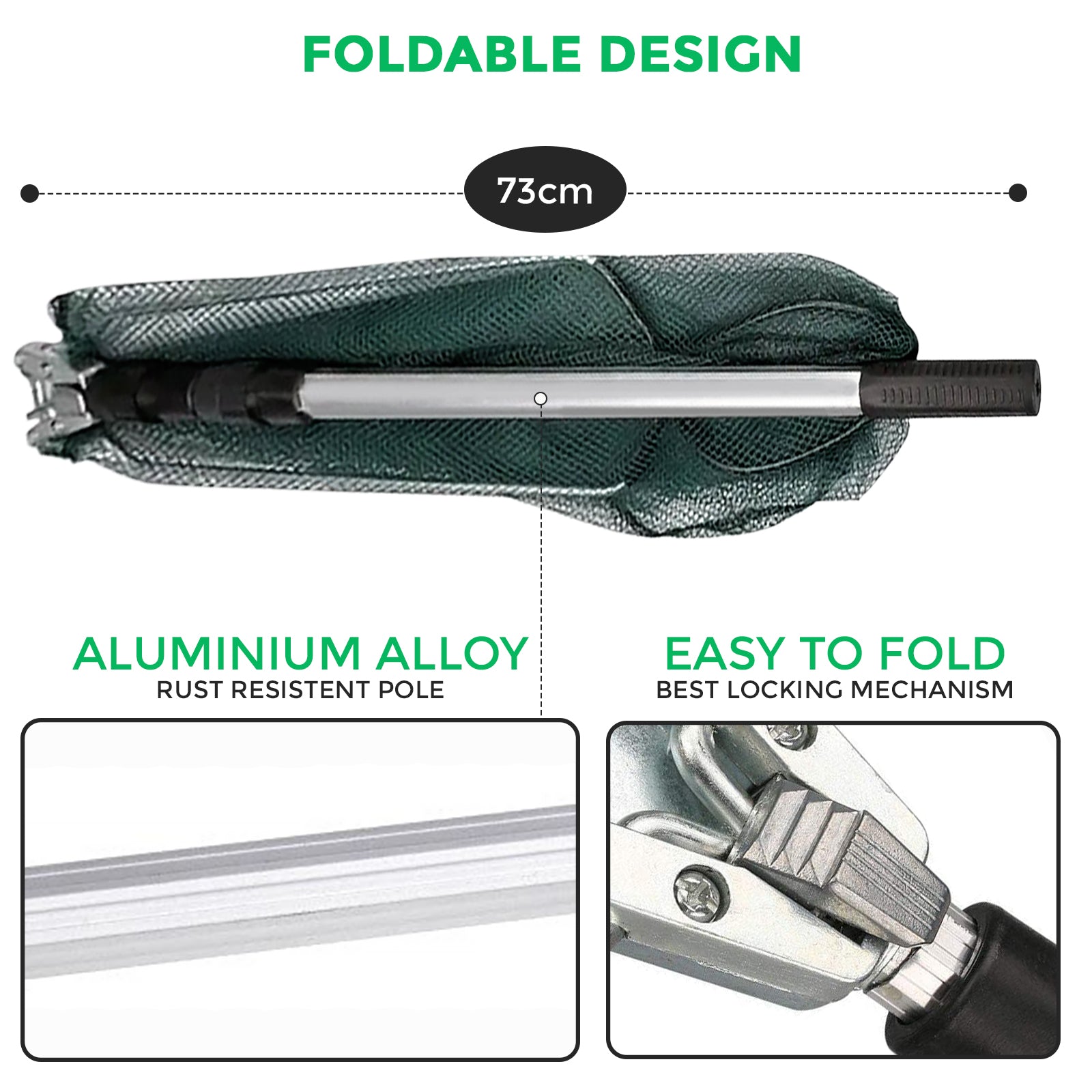 - Foldable and Anti-skid Design - Only 73cm/28'' long after being folded, you can put it into a backpack or bag very easily. The handle is made of an aluminium tube, which is foldable and anti-skid. This landing net is slippery and lightweight, which makes you feel comfortable to hold and easy to control.