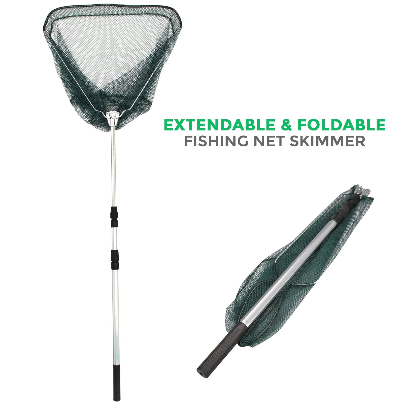 - Multifunctional Folding Net- The fishing net mesh fabric is designed to get snags less easily, and the locking mechanism for the telescoping pole isn't a plastic switch, easy to open and fasten.