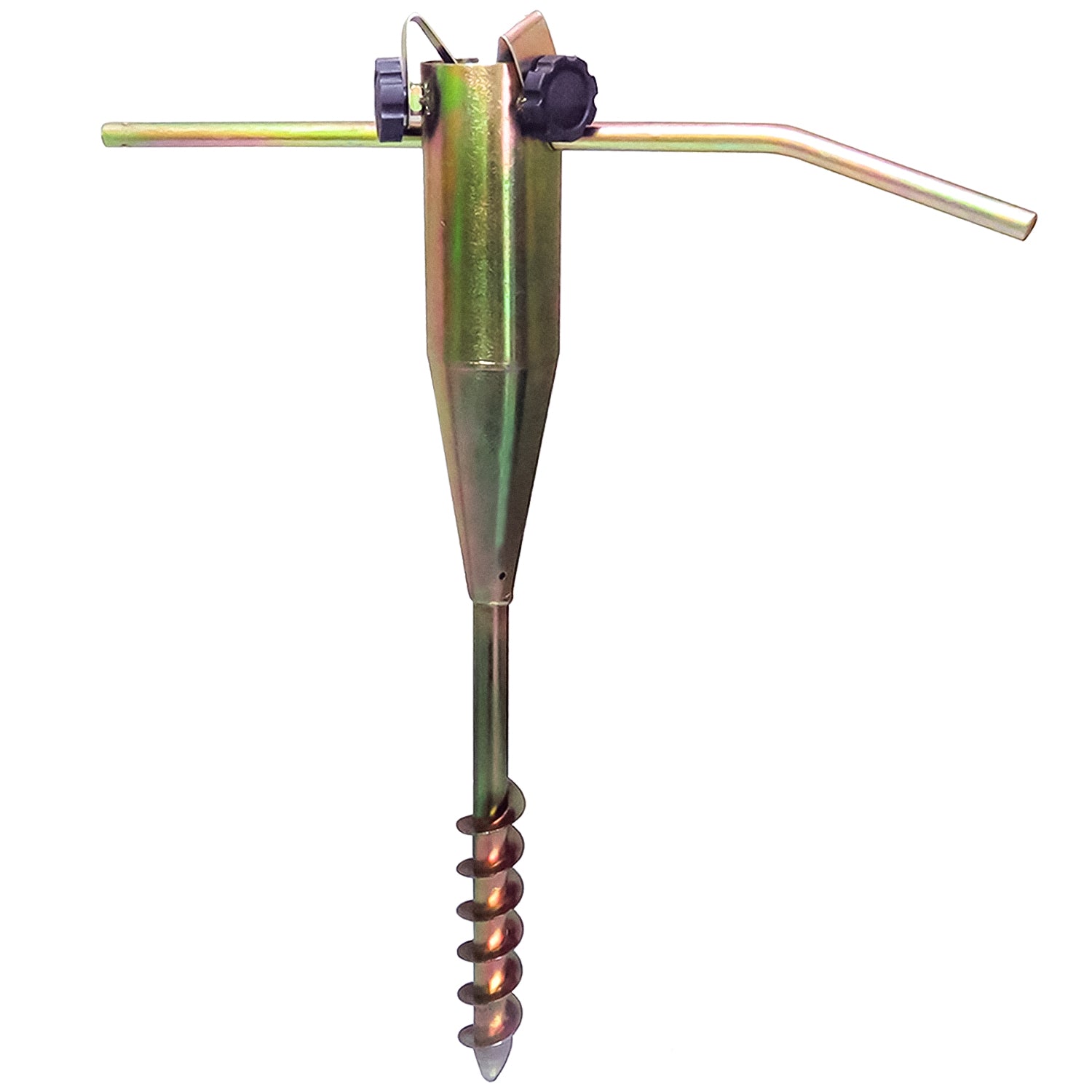 Heavy duty Steel Screw-In Ground Spike provides rock solid support for garden parasols, rotary dryers, bird feeders, cloth airers and flags etc. It simply screws into the ground using the provided turn rod and can be easily unscrewed and moved around as required. Simply insert the item you want to secure and tighten the 3 screws at the top of the unit.