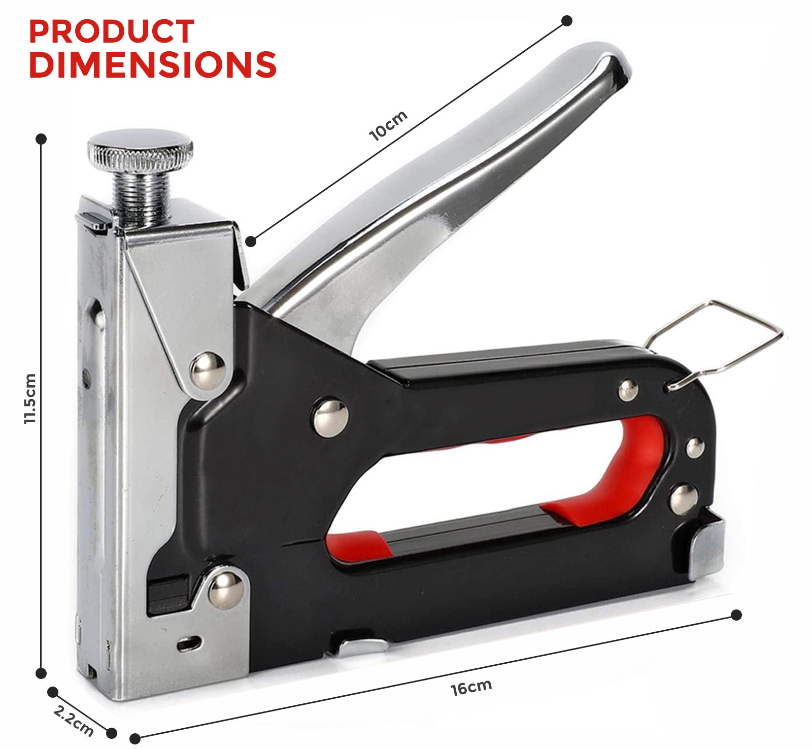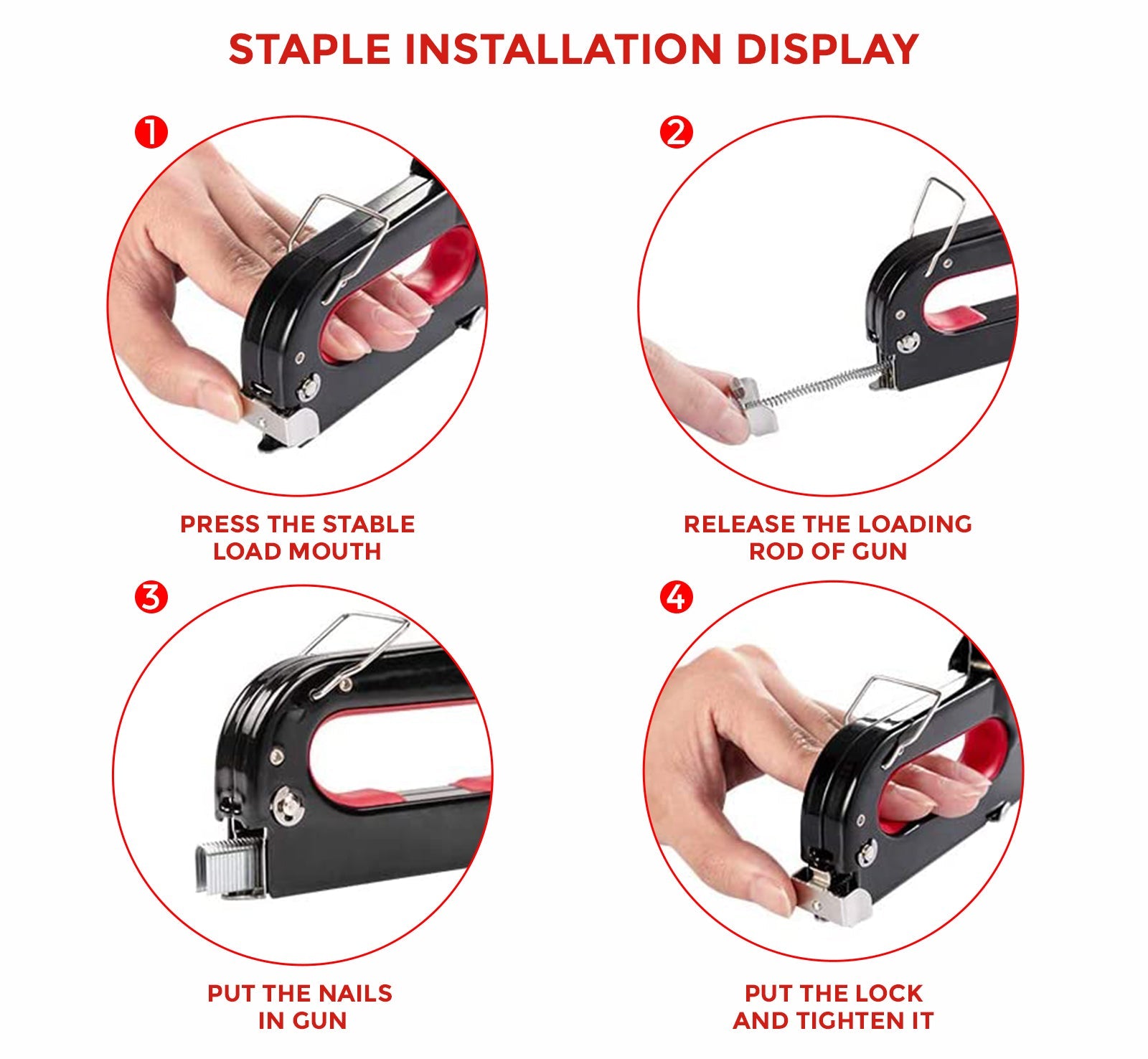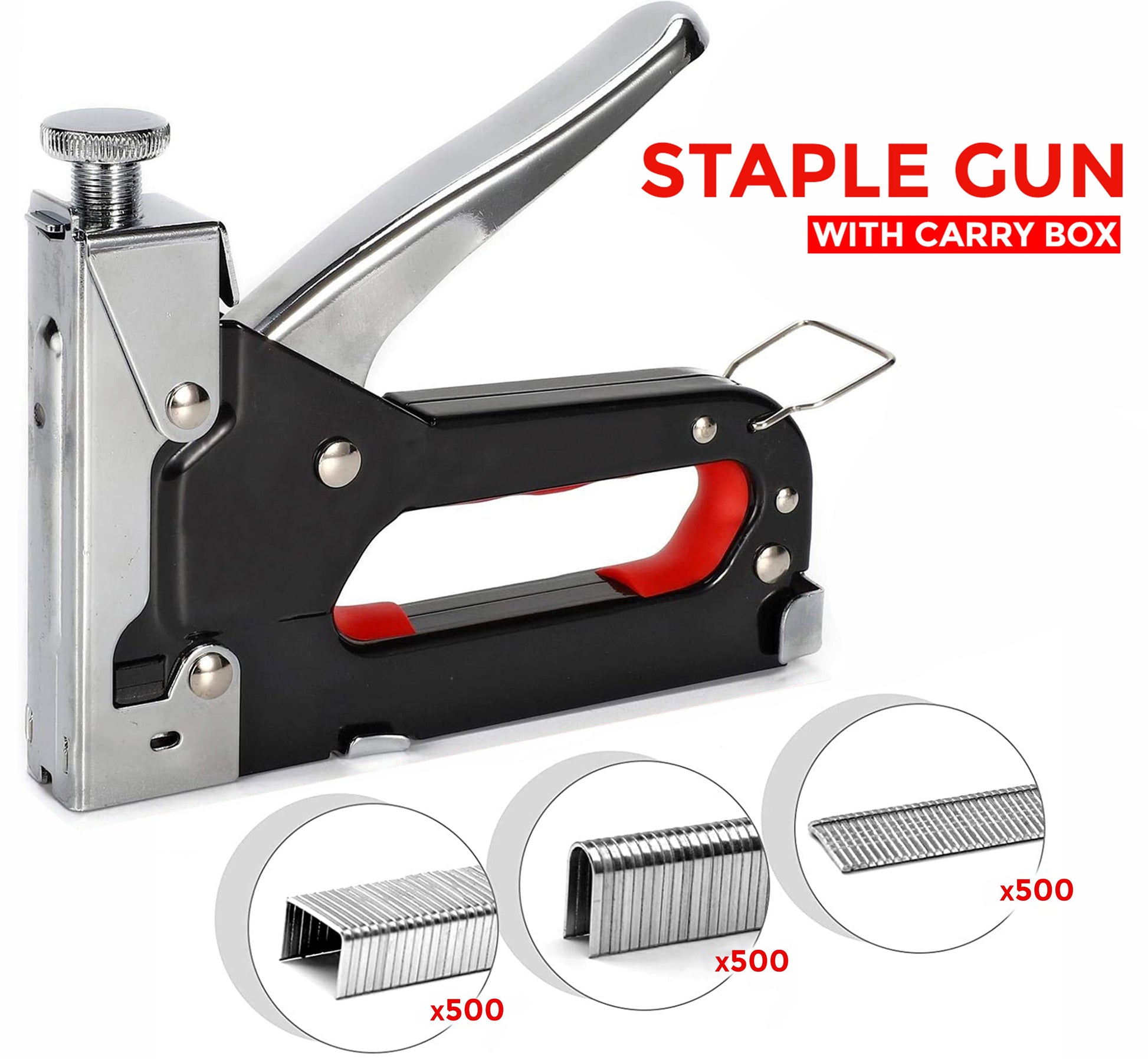 - Ergonomic Design The staple gun has linear power curve which will comfort users. Loading staple becomes easier and quicker with the magazine release latch.